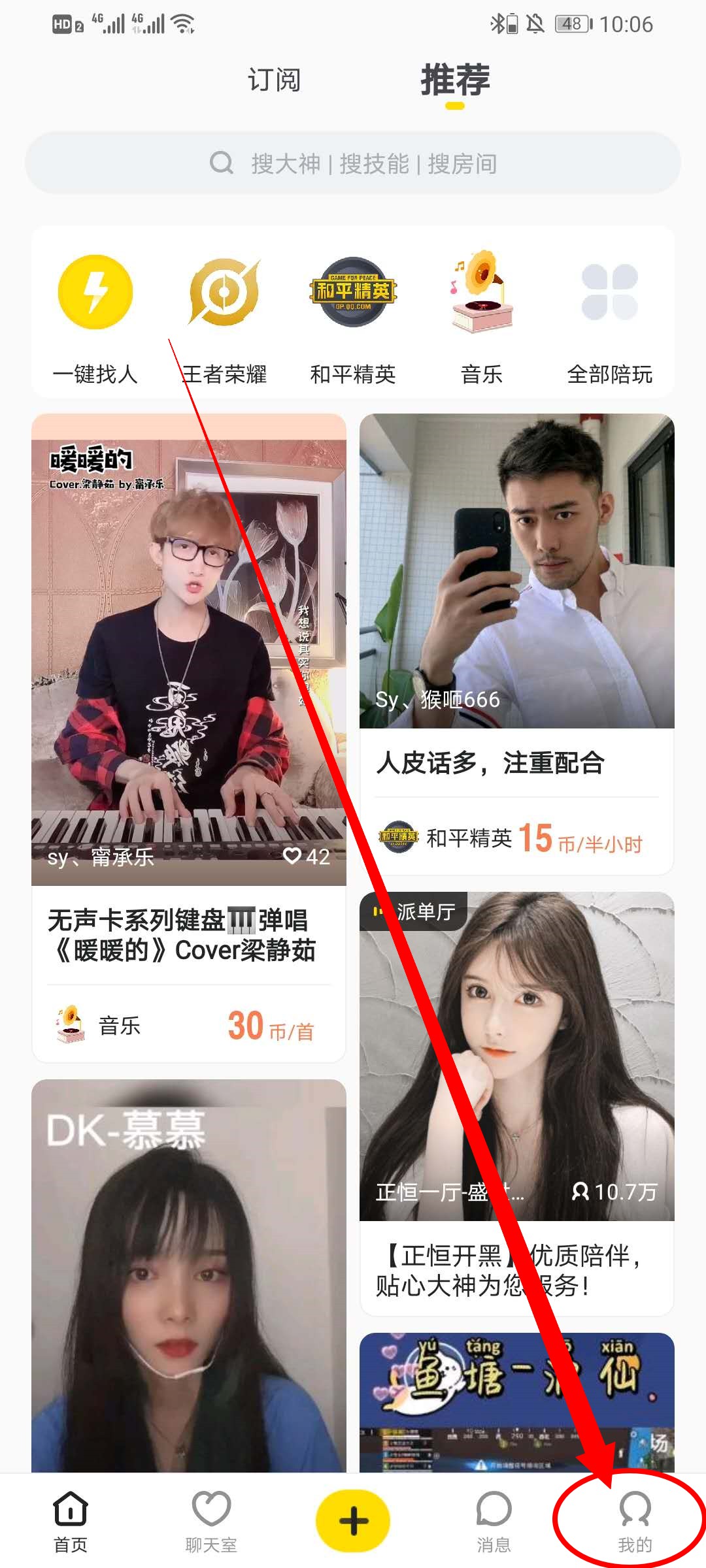 1、打开小鹿陪玩APP,在首页点击右下方的我的进入我的界面。