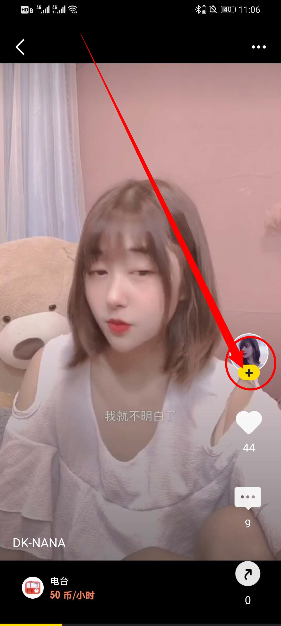 2、在主播界面点击主播的头像下方的黄色加号即可关注主播,再次点击头像进入主播的个人主页。