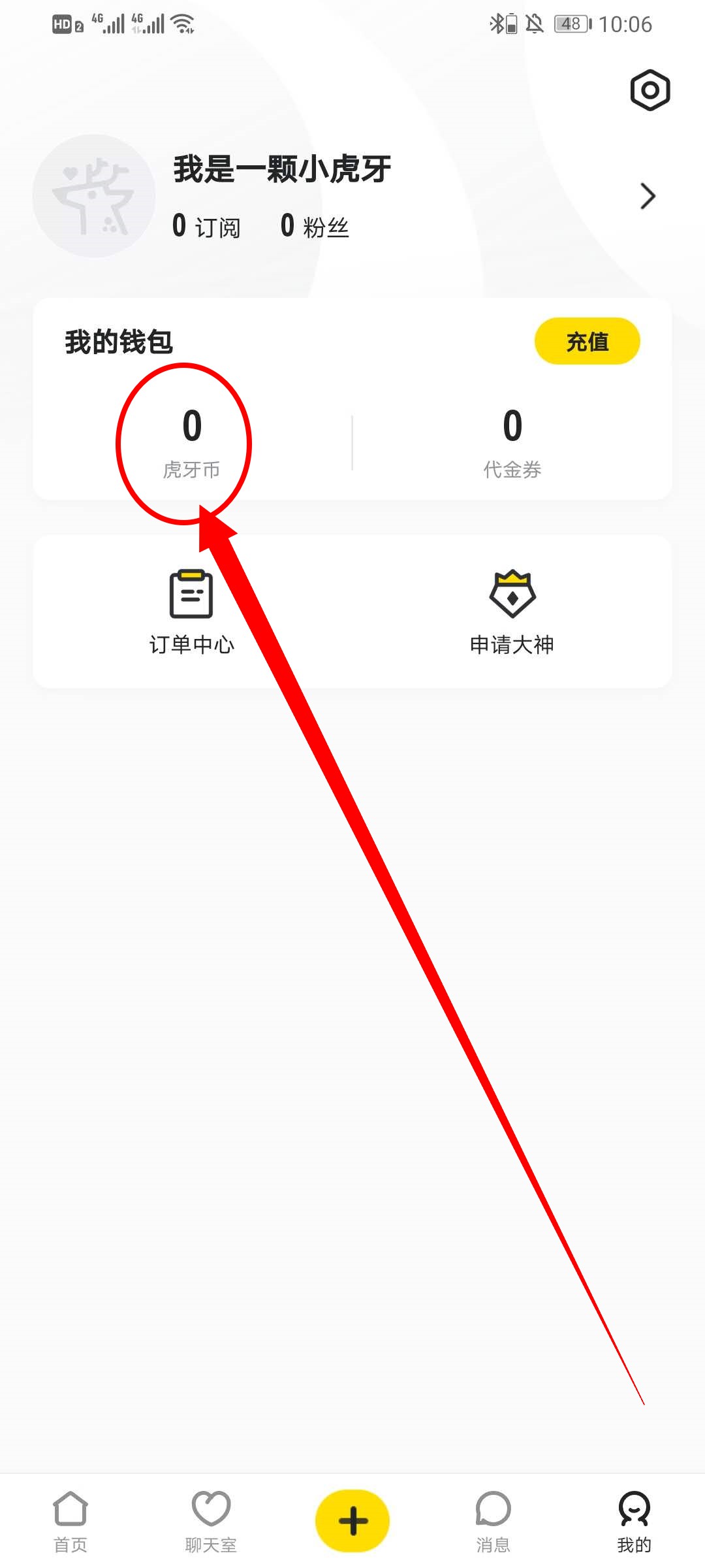 2、在我的界面点击上方的虎牙币,进入虎牙币充值界面。