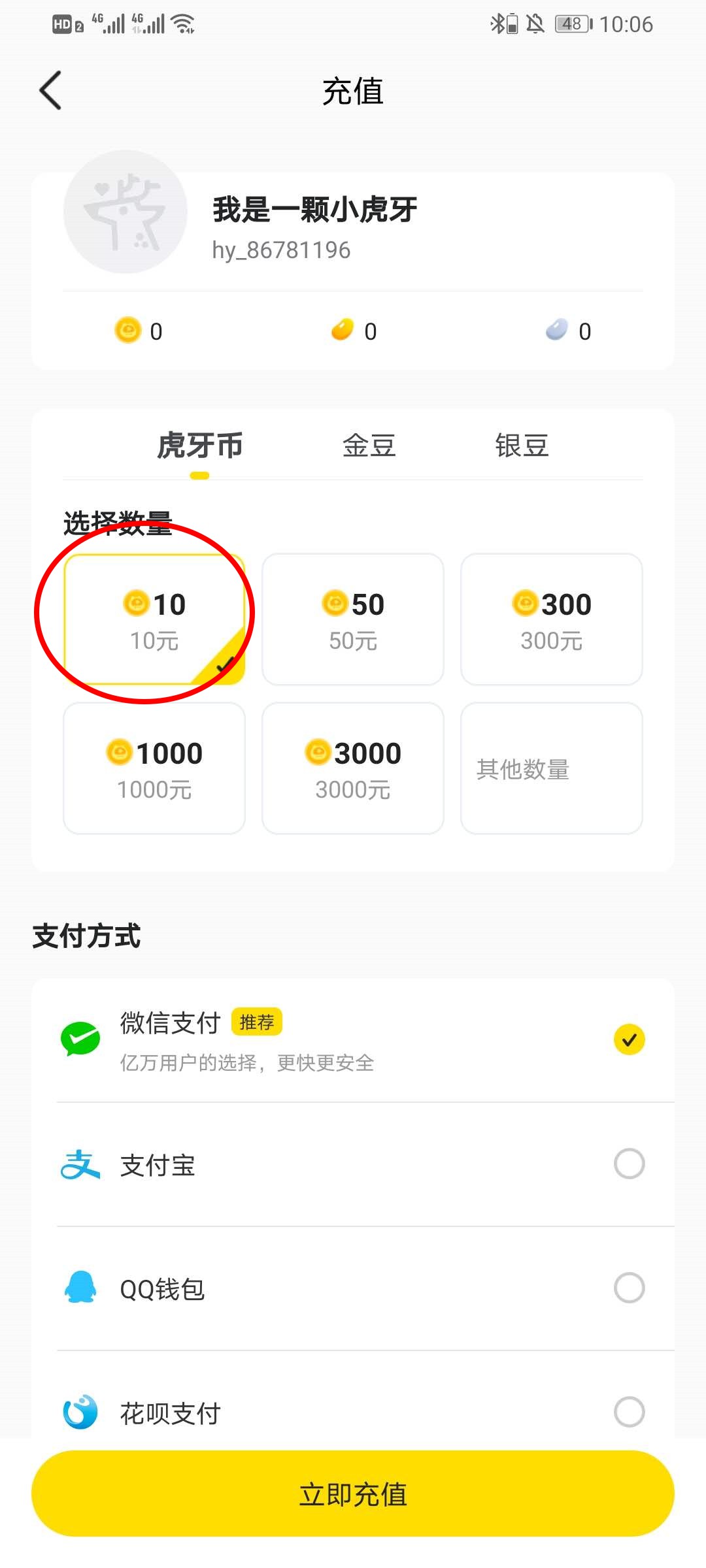 在小鹿陪玩中1虎牙币等于人民币1元。10币就是人民币10元