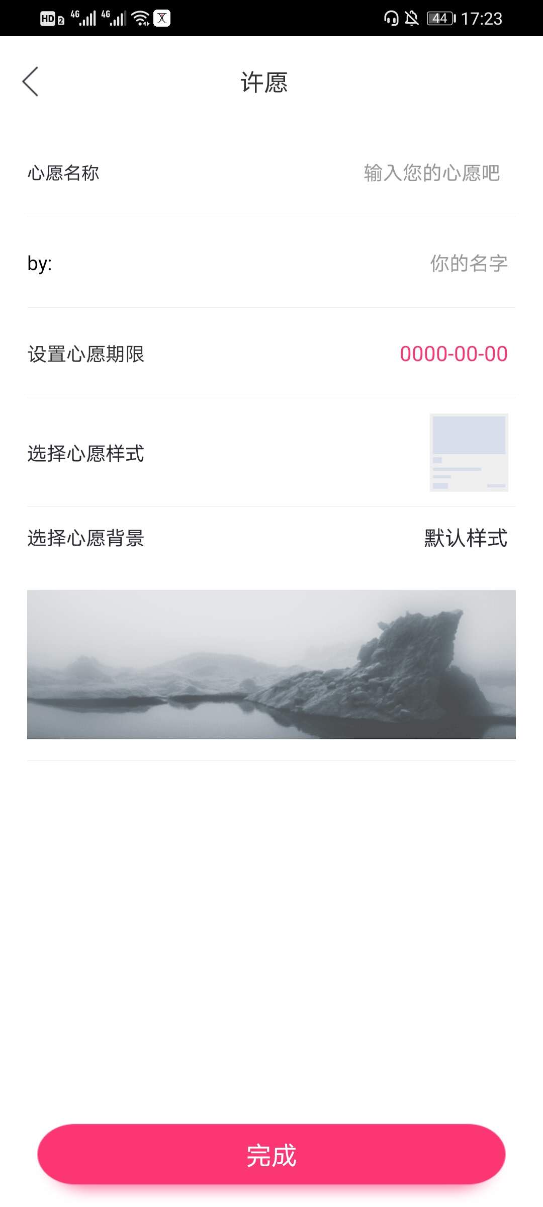 3、在添加心愿界面,编辑好心愿点击下方的完成即可。