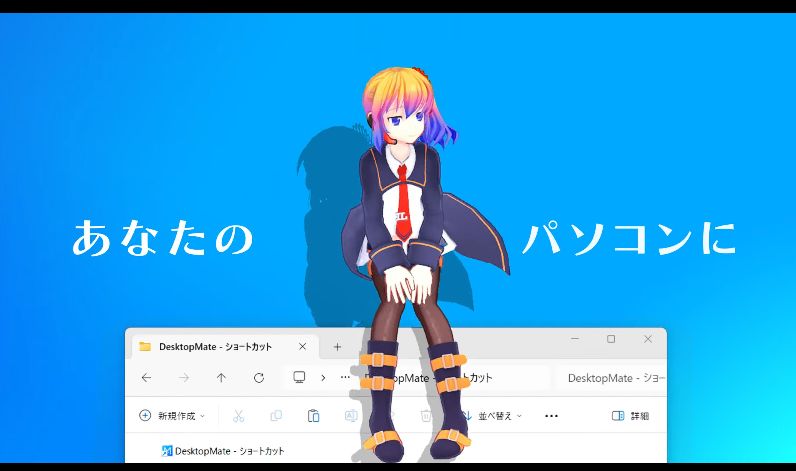 《Desktop Mate》自称为新一代桌面吉祥物平台,玩家可以将可爱的二次元角色放进PC屏幕中,利用3D技术生动呈现,让这些角色在桌面上自由移动,坐在窗口上或在桌面上跳来跳去。