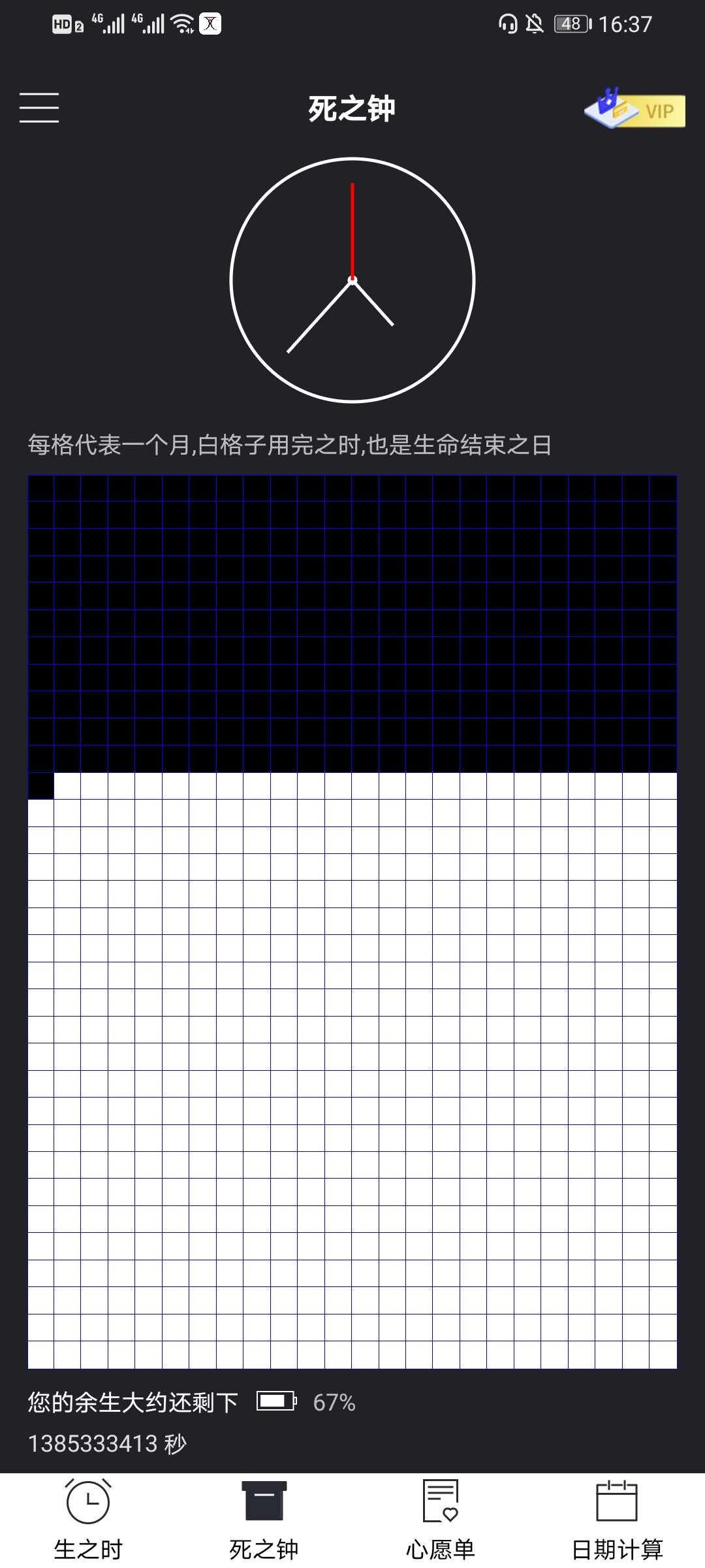 添加心愿单,记录你的心愿计划。用死之钟生命倒计时看时针转动,生命流逝,记录你的光阴和心愿!