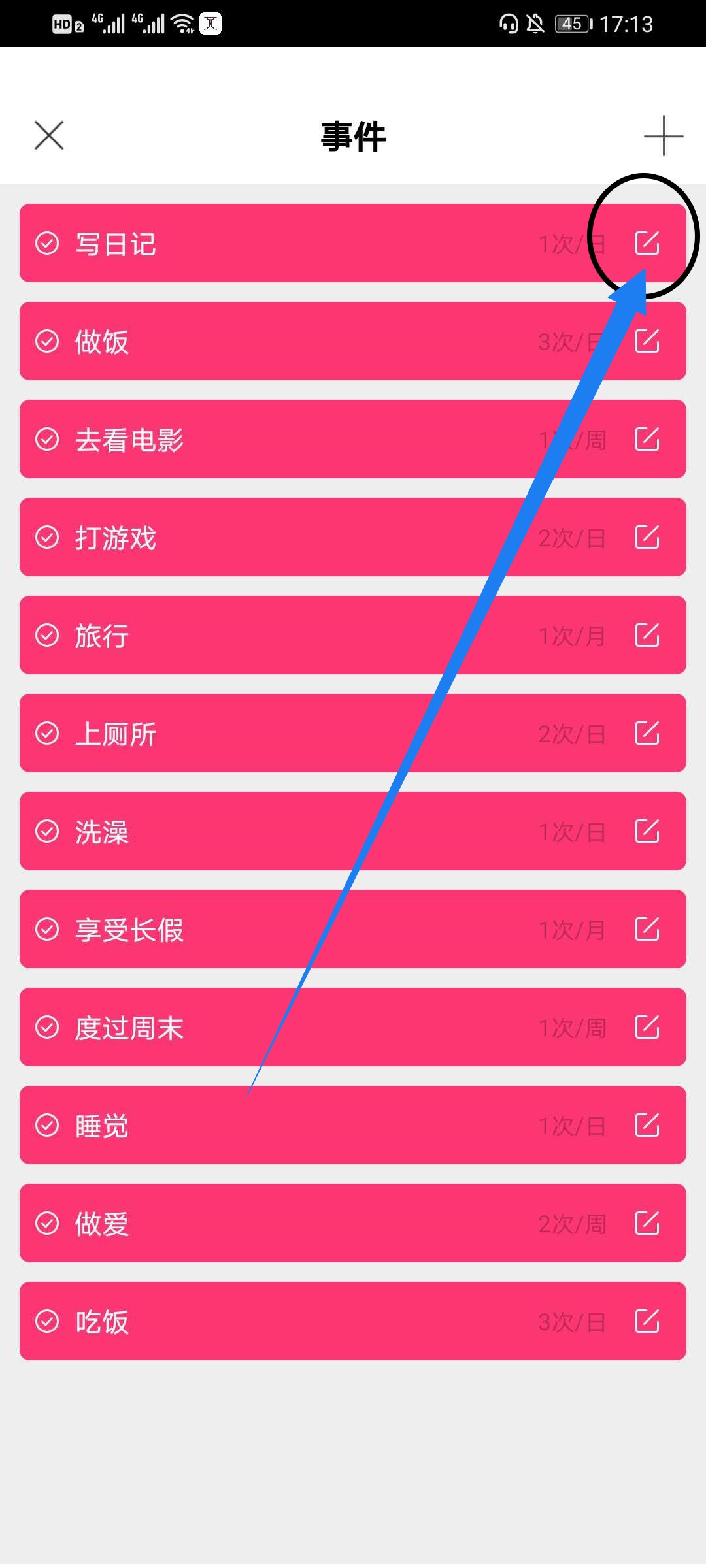 3、在事件界面,点击事件右边的铅笔,进入修改。