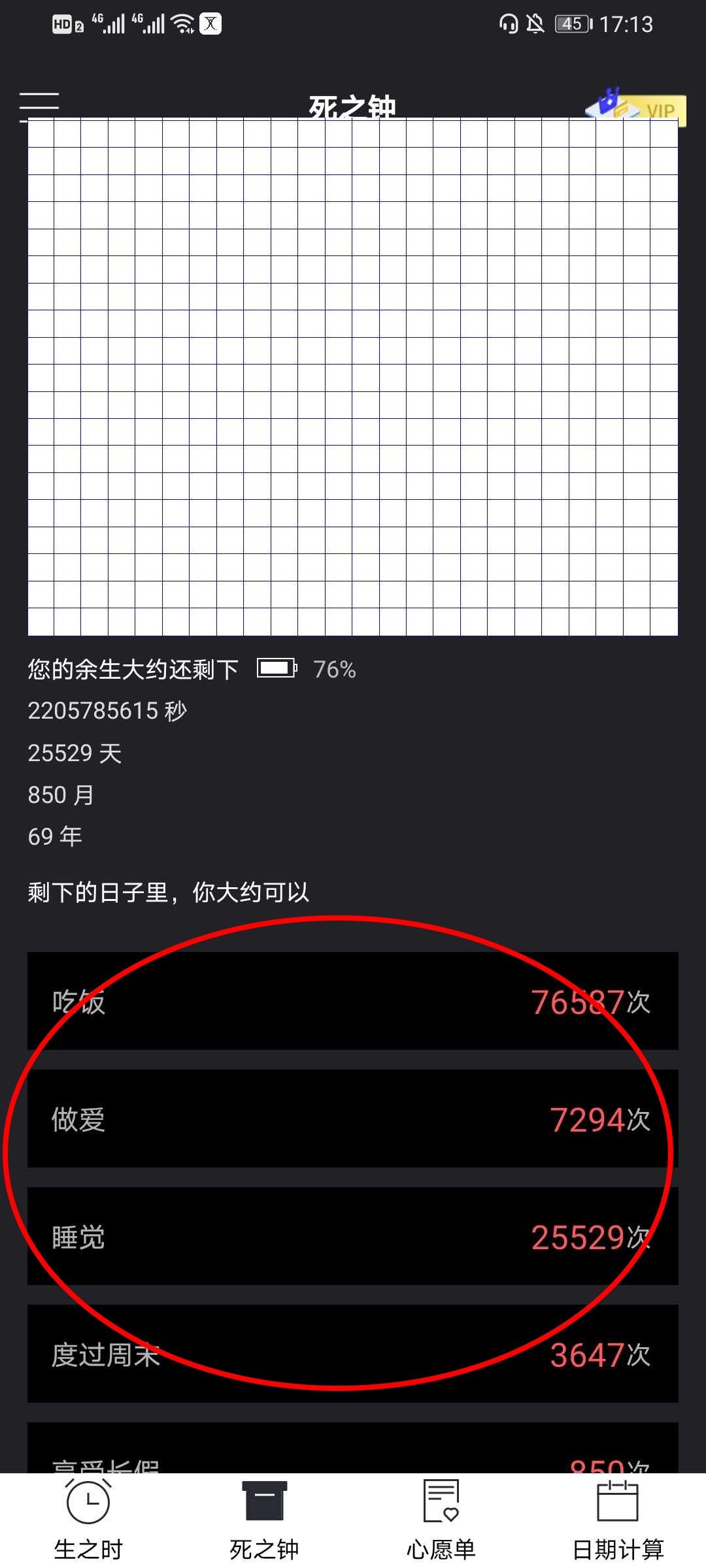 1、打开生命倒计时APP,在首页点击下方的死之钟,进入死之钟界面。