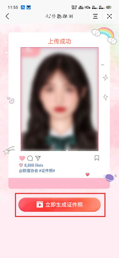 5.上传照片成功之后,点击【立即生成证件照】观看的一段15秒-30秒的视频,观看之后关闭视频;