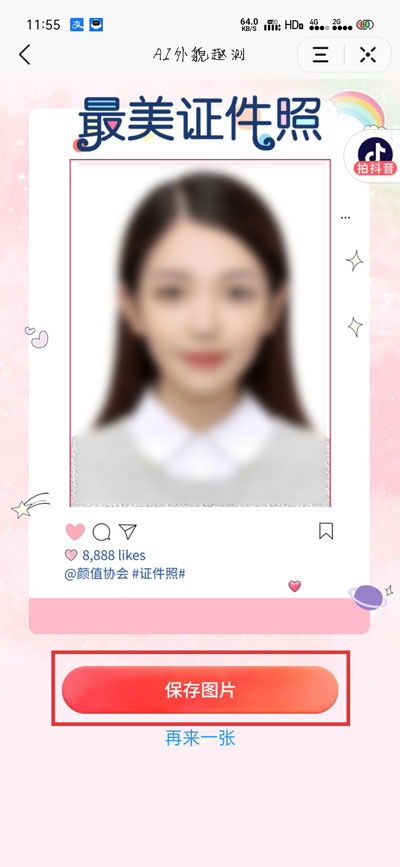6.最后就可以得到一张生成的证件照照片啦,点击【保存图片】将其保存在手机中即可;