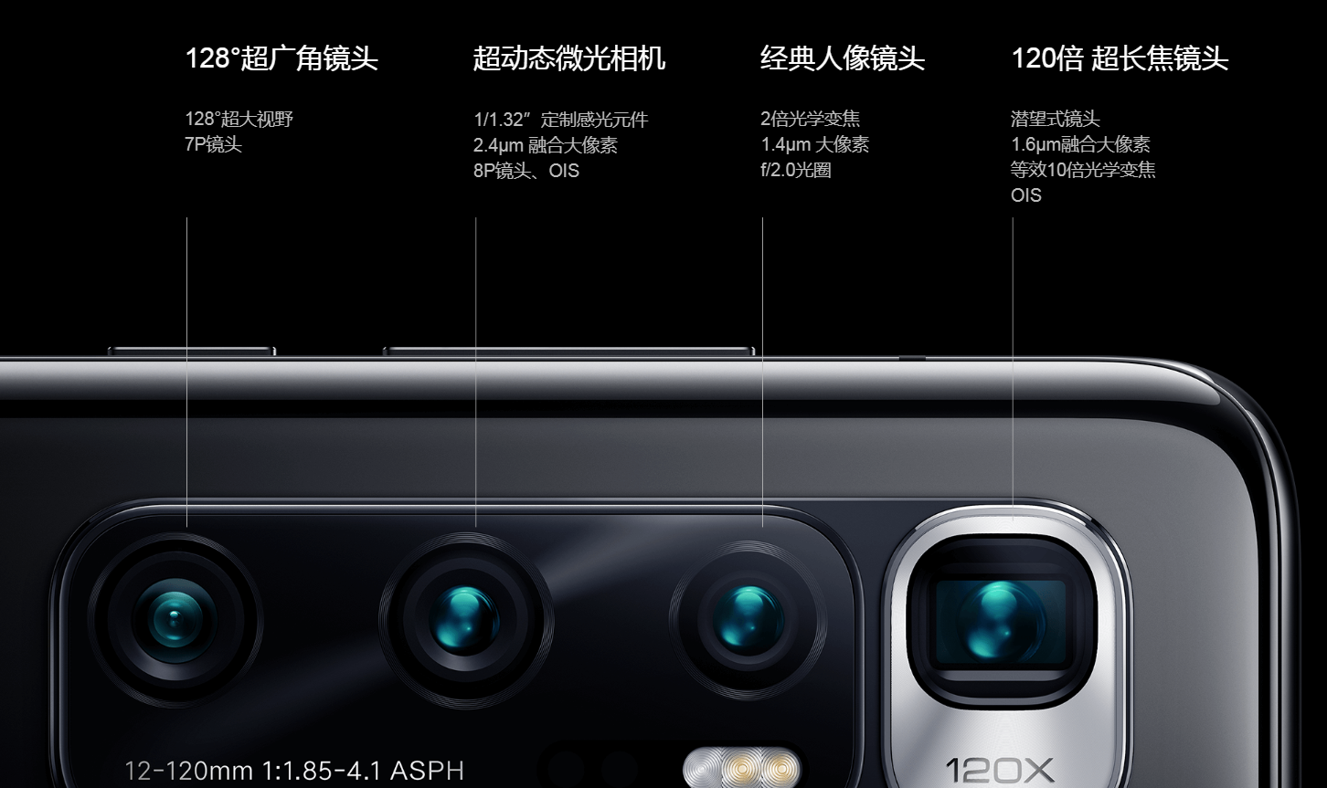 小米10Ultra影像系统迎来重磅升级,后置四颗镜头,从上到下分别为4800万像素潜望长焦 1200万像素人像 4800万像素超动态微光主摄 2000万像素128°超广角/微距镜头。如果说上半年的1亿零800万像素影像系统有争议,这一次的影像系统绝对顶级,直接挑战华为P40系列水平。