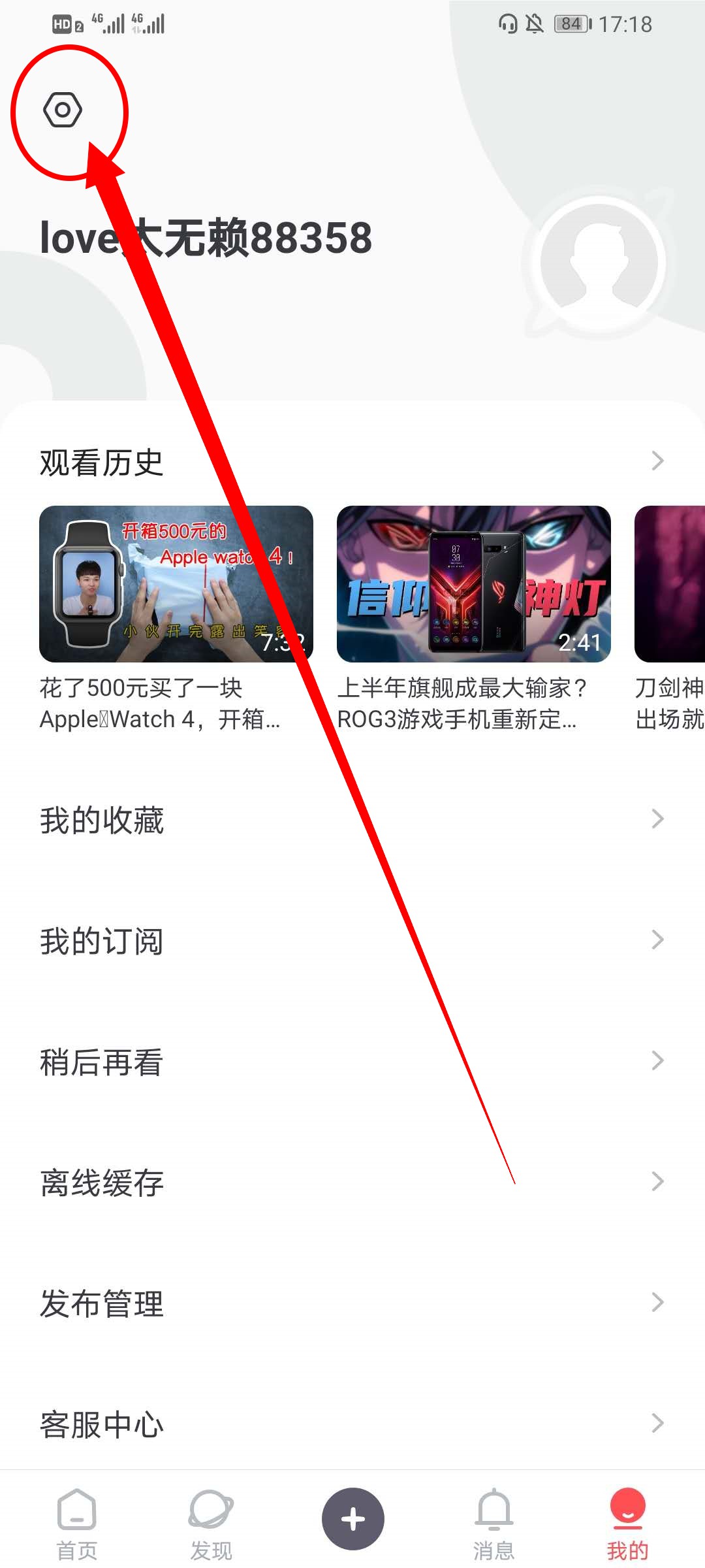 2、在我的界面中,点击左上角的圆圈进入设置。