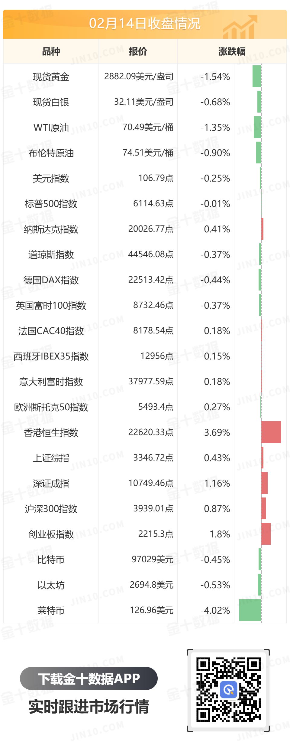 上周五,因美国1月“恐怖数据”意外暴跌,美元指数周线收于近九周低点,最终收跌0.25%,报106.79。基准的10年期美债收益率收报4.4800%;对货币政策更敏感的两年期美债收益率收报4.2690%。
