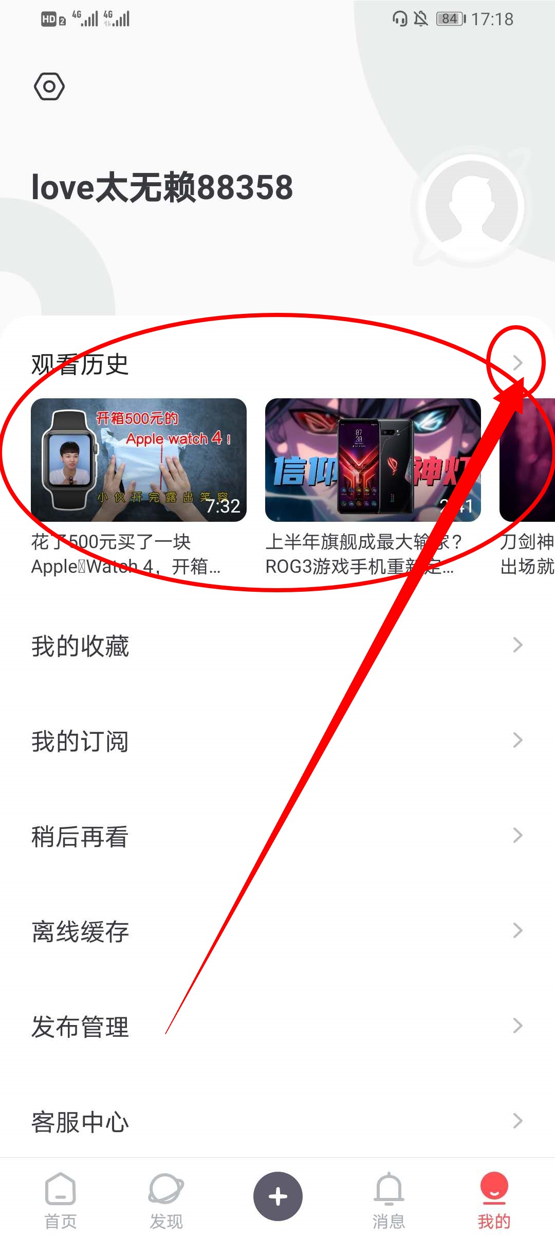 2、在我的界面,点击观看历史,进入历史记录界面。
