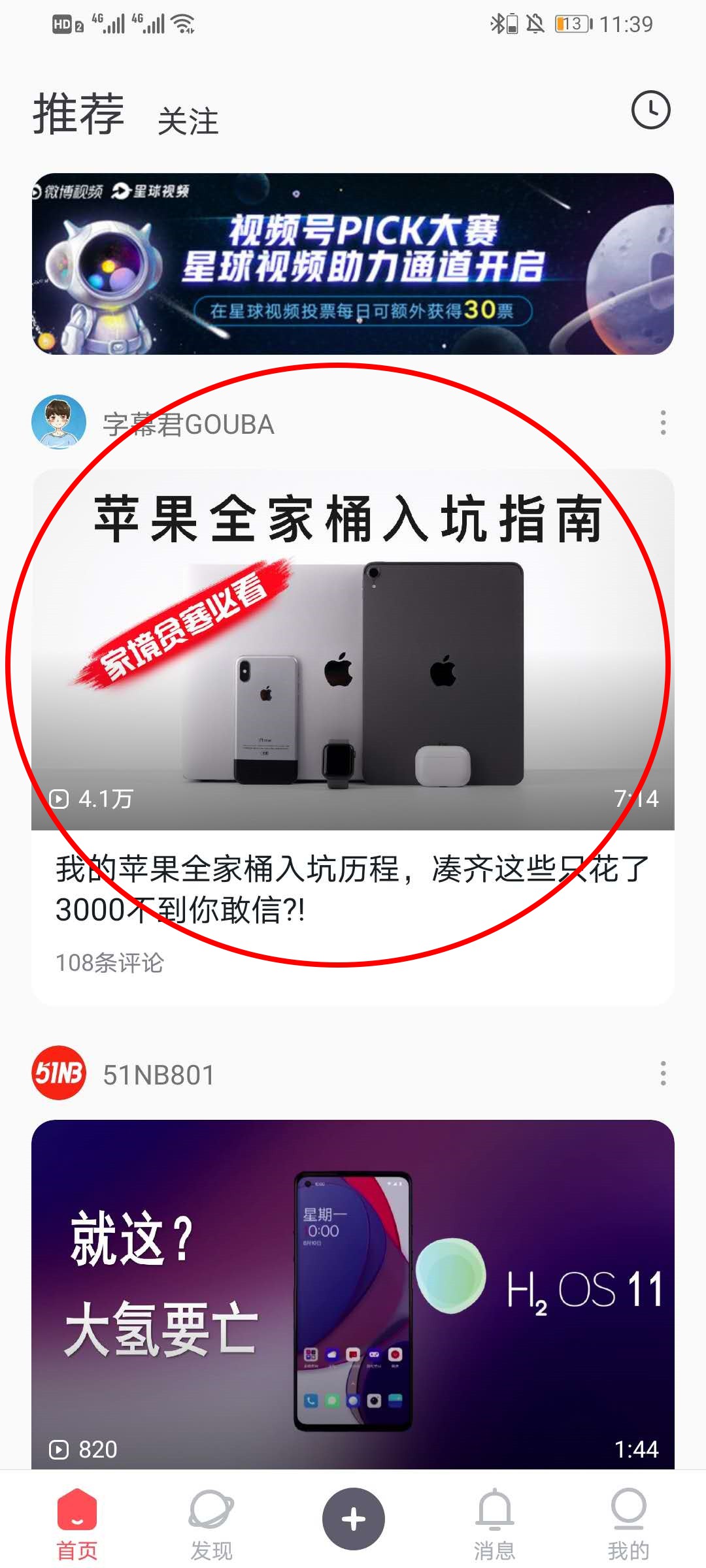 1、打开星球视频APP,在首页点击视频,播放视频。