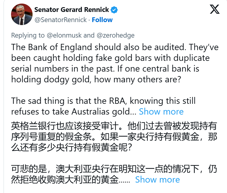 DOGE的下一个任务可能是查明诺克斯堡是否真的拥有它声称拥有的4580吨黄金。这一建议立即在X上疯传,马斯克已经被拉进了这场辩论,一个X用户让他检查一下美国的黄金储备是否还存在。他回答说:“当然,它至少每年都会被审查一次。”