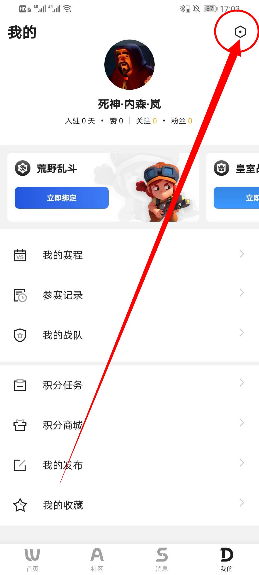 1、打开V电竞,在首页点击我的,进入我的界面。
