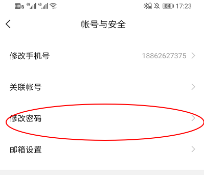 4、在账户与安全界面,点击修改密码,进入修改密码。