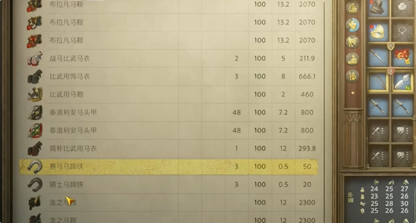 美因茨马具:这是一套更高级的马具,适合追求速度和耐力的玩家。它能够显著提升马匹的耐力和速度。