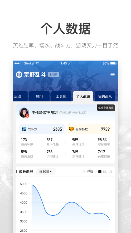 2.你会在这里看到很多关于你的个人数据,每款游戏都有可以随机进行切换。只要是你绑定过的游戏账号都可以在这里显示出来