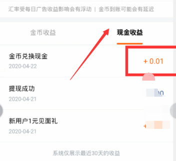 具体的金币与现金的兑换比例,也就是汇率,会受到每日广告收益的影响而产生上下浮动,但大致的兑换比例会保持在30000比1上下,也就是说如果我们想要获得1元钱的话,就需要先赚取30000左右的金币收益。