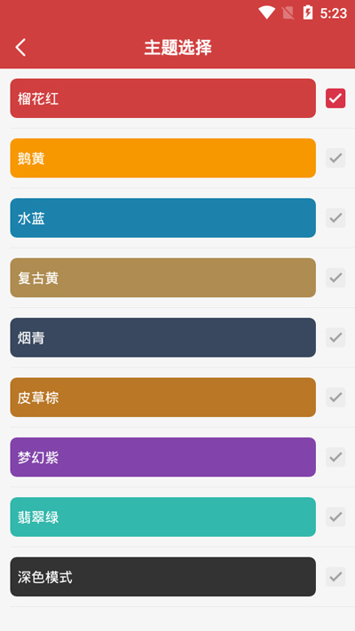 5.可以看到当前默认使用的主题颜色为“榴花红”,选择自己喜欢的颜色进行应用即可;