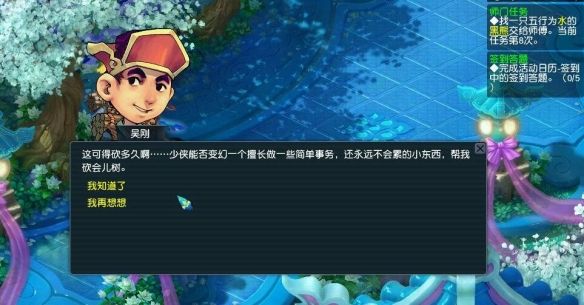 1、玩家获取灯谜线索后来到月宫(12,33)对话NPC【吴刚】;