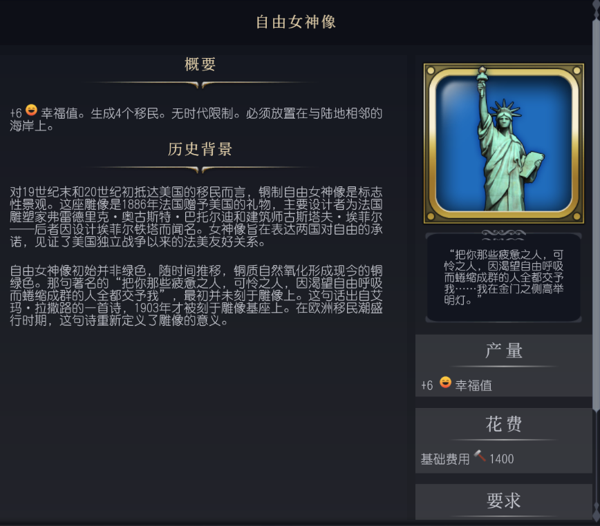 文明7自由女神像有什么效果-文明7自由女神像属性介绍