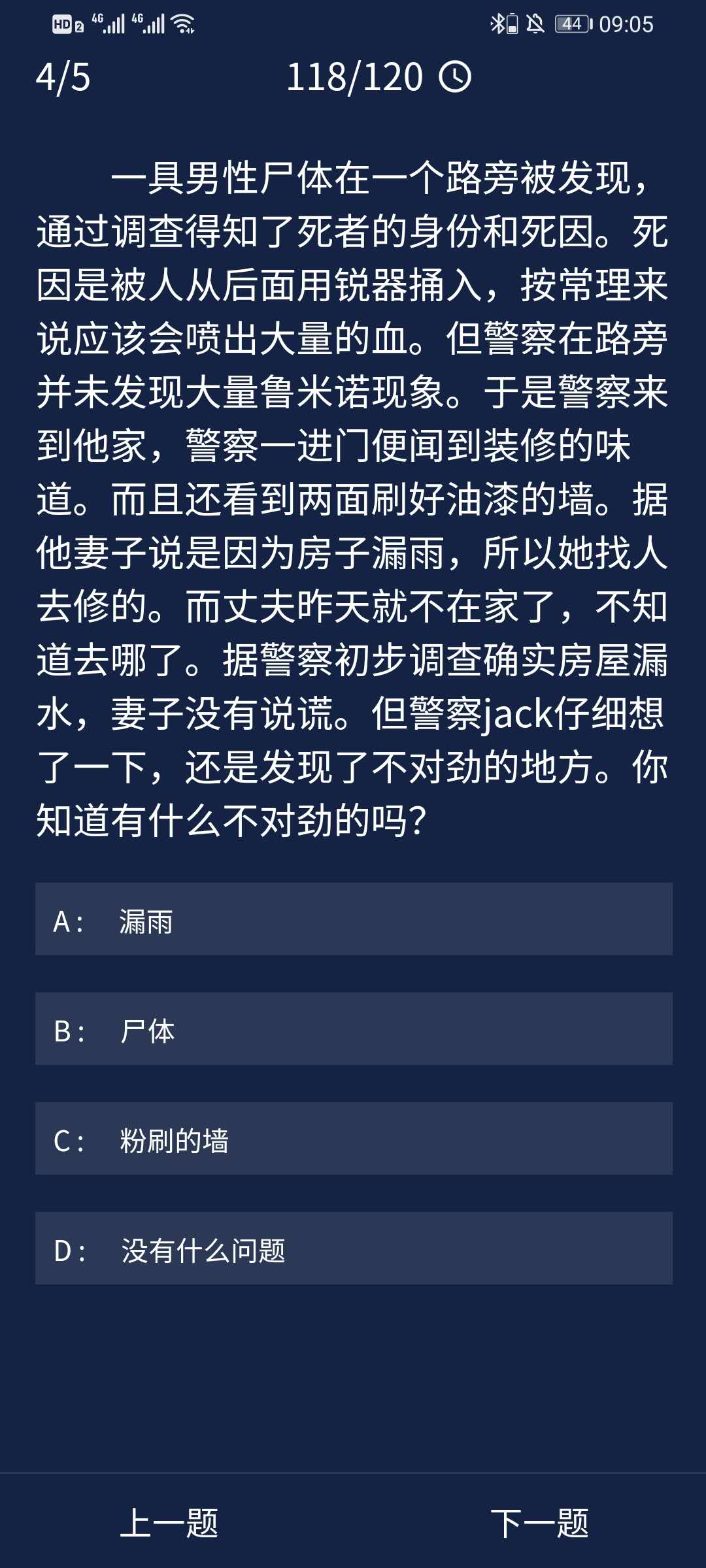 4、一具男性尸体在一个路旁被发现,通过调查得知了死者的身份和死因。死因是被人从后面用锐器捅入,按常理来说应该会喷出大量的血。但警察在路旁并未发现大量鲁米诺现象。于是警察来到他家,警察一进门便闻到装修的味道。而且还看到两面刷好油漆的墙。据他妻子说是因为房子漏雨,所以她找人去修的。而丈夫昨天就不在家了,不知道去哪了。据警察初步调查确实房屋漏水,妻子没有说谎。但警察jack仔细想了一下,还是发现了不对劲的地方。你知道有什么不对劲的吗?