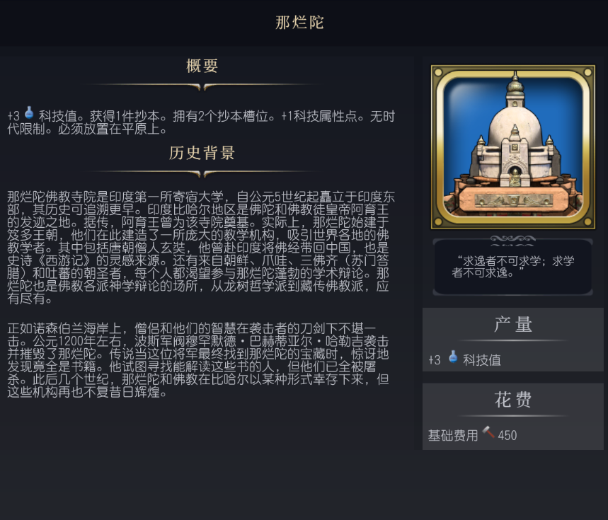 文明7那烂陀有什么效果-文明7那烂陀属性介绍