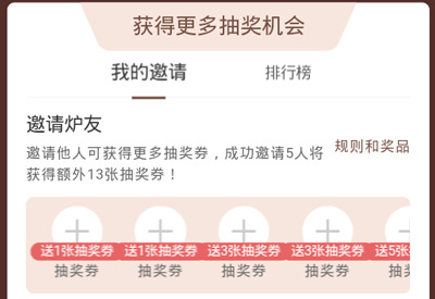 邀请他人可获得更多抽奖券,成功邀请5人将获得额外13张抽奖券!