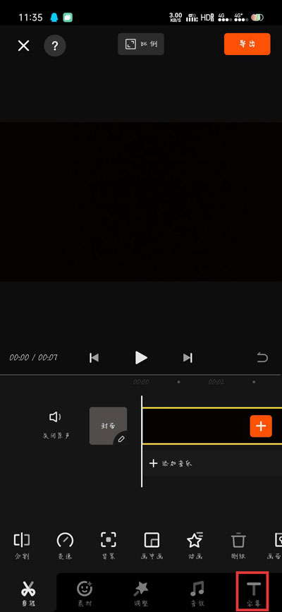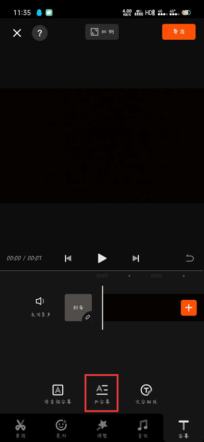 2.在视频剪辑页面中,点击下方的【字幕】为该视频添加一个字幕;