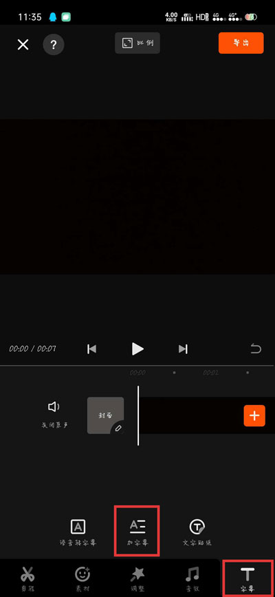 2.在视频剪辑页面,点击【字幕】-【加字幕】功能,给视频添加上字幕;