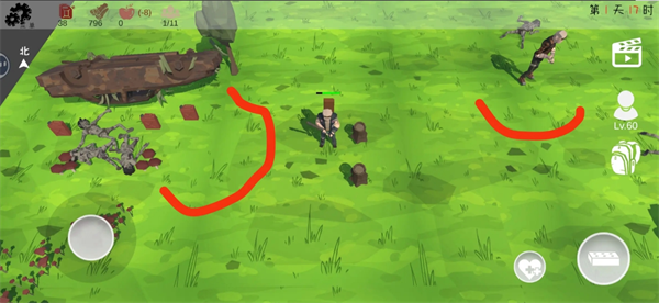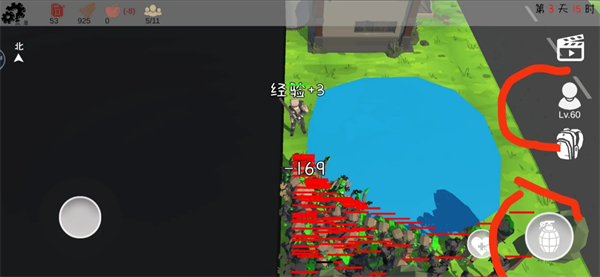 接着水库,解锁左3水库会发现地形优势,水库左侧有条缝隙,你走进去。怪物卡在外面打不到你,而棒子可以打到怪物。后边,死亡重开后第一步,绕地图跑一圈,引怪到水库,打怪刷等级,(怪物全部清空后死亡重开,怪物重新恢复数量)。可以使用 取消攻击后摇 加快效率,砍树同理。后面可以使用手雷,丢一颗手雷直接清图(你引的100只怪物全部消失,人物等级升3级以上)。