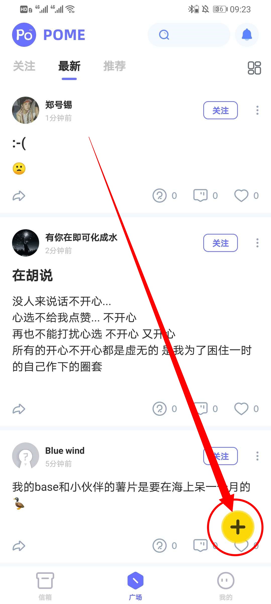 1、打开PomeAPP,在首页点击右下方的黄色加号。
