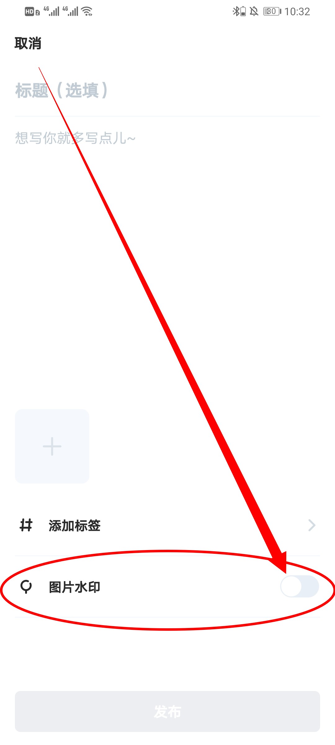 2、在进入的提问编辑界面,点击下方的图片水印,点击打开即可添加水印。