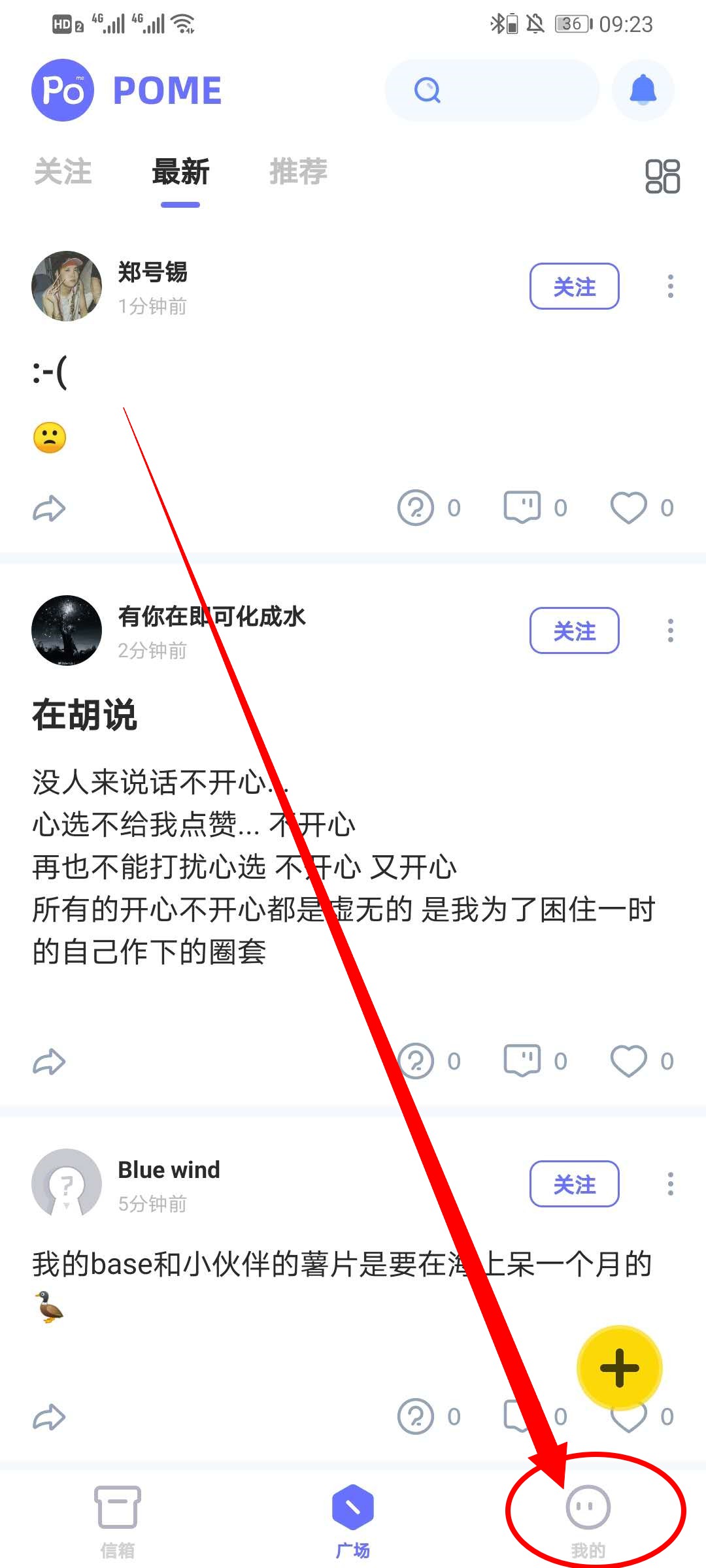 1、打开PomeAPP,在首页点击右下方的“我的”,进入我的界面。