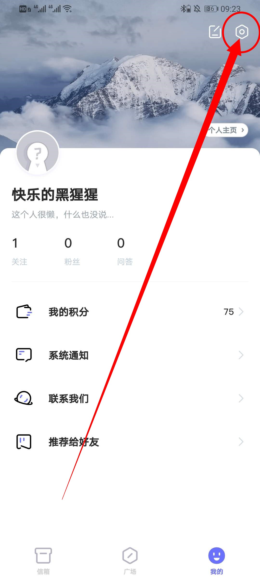 2、在我的界面,点击右上方的圆圈设置,进入设置界面。
