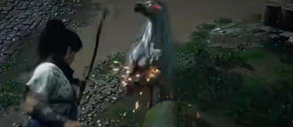 1、先来到图中位置,然后使用蓄力攻击击败第一阶段的大郎。