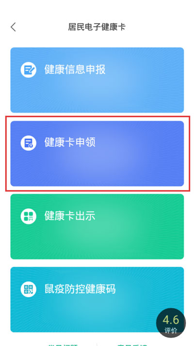 2.进入健康卡页面后,我们需要先申领自己的健康卡,申领后,点击【健康卡申领】;