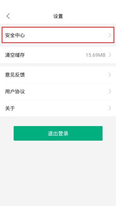2.在【我的】页面点击右上角的【设置】,进入设置后,点击【安全中心】进入安全中心;