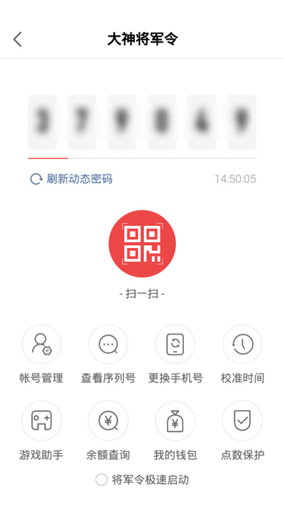 5.绑定成功后,就进入将军令页面,可以看到将军令的动态密码;