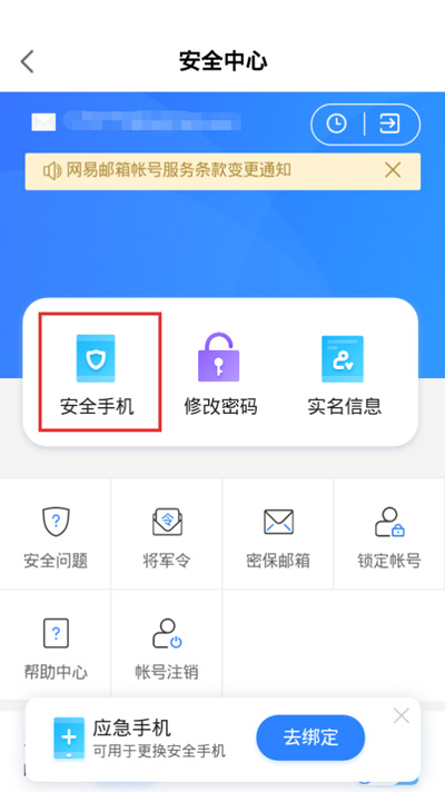 4.进入安全中后,点击最下方的【账号注销】进入注销账号页面;