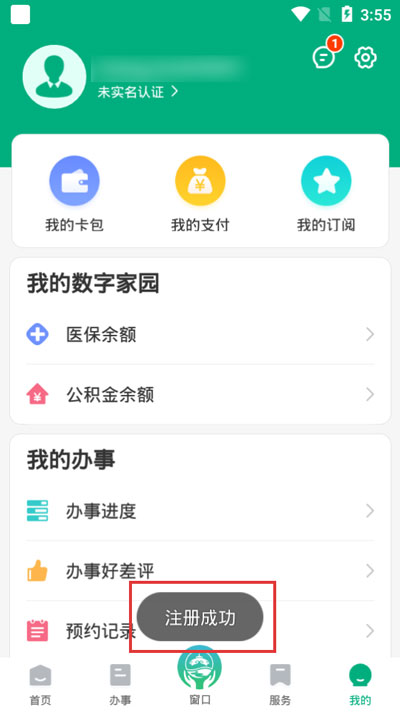 6.最后提示“注册成功”并进入蒙速办APP的我的页面,就表示我们已经成功完成账号注册;