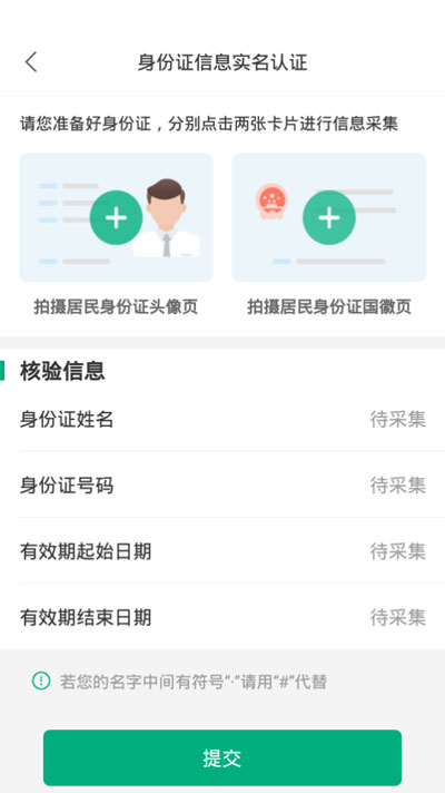 5.【三级实名认证】则是使用身份证正反面照片进行认证,上传身份证的正面反之后,系统自动提取身份证信息,点击【提交】即可完成3级认证;