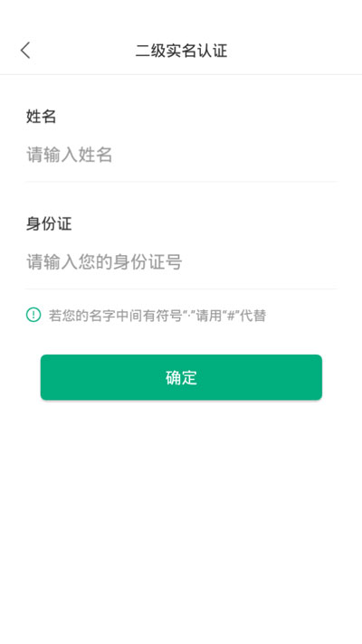 4.【二级实名认证】只需要输入我们的姓名 身份证号码,点击【确定】即可完成2级认证;