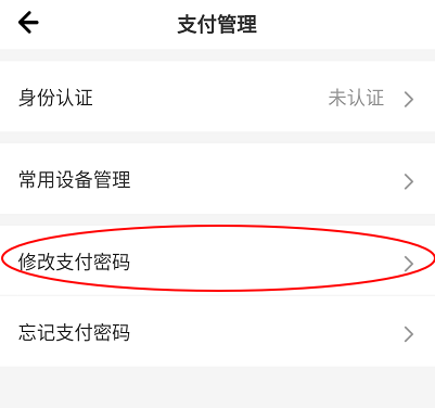 4、在支付管理界面,点击修改支付密码,进入修改支付密码界面。