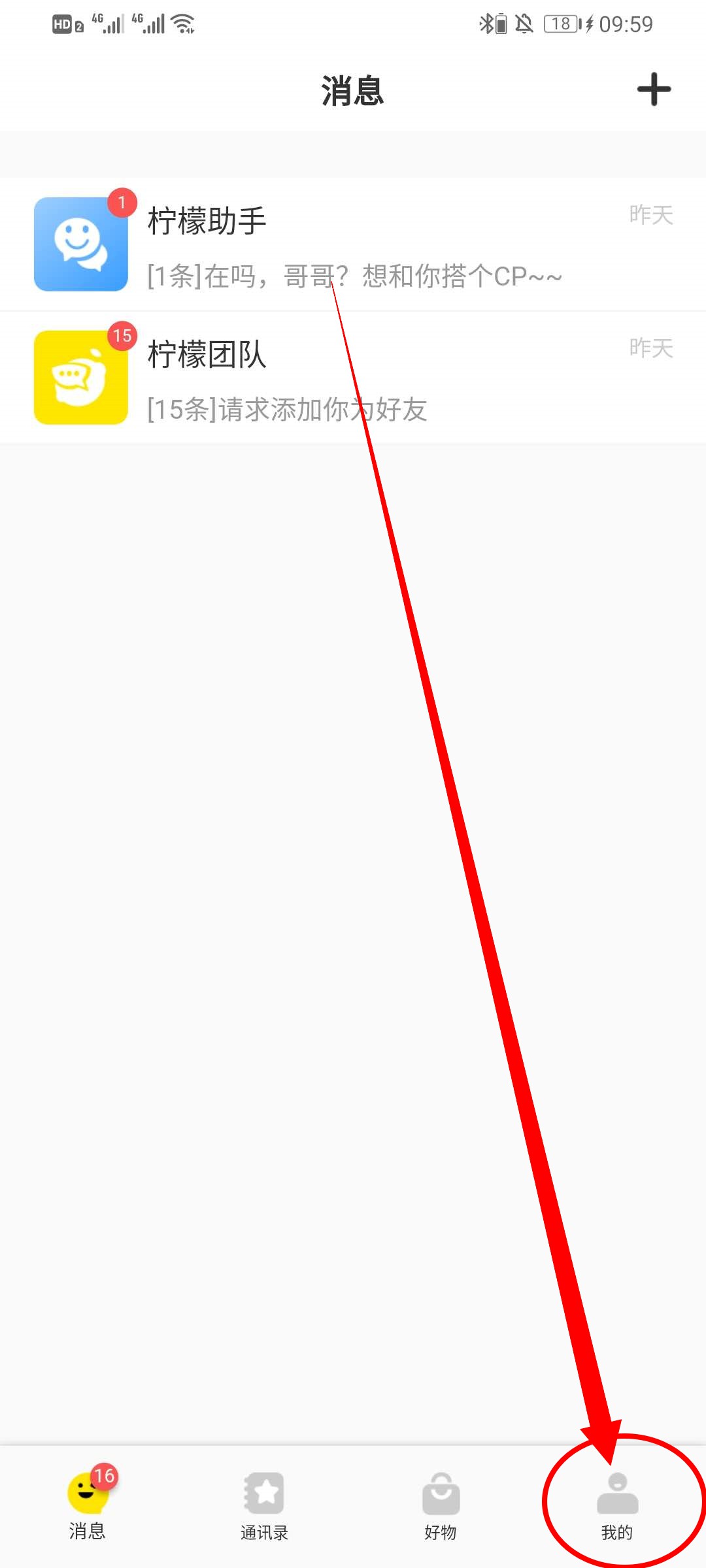 1、打开柠檬畅聊app,在首页点击右下方的“我的”,进入我的界面。