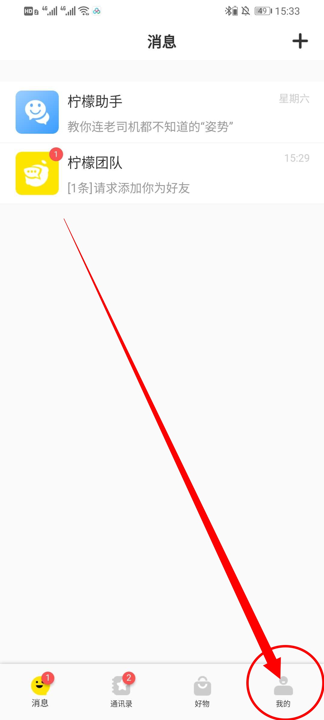 1、打开柠檬畅聊app,在首页点击右下方的“我的”,进入我的界面。