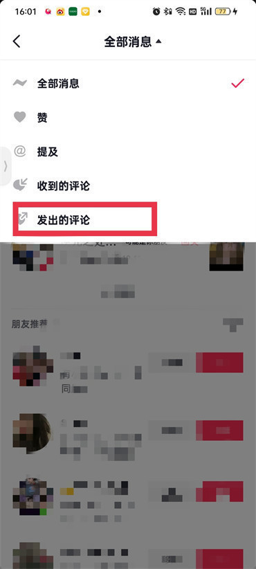 3.然后在下拉出来的选项中点击【发出的评论】;