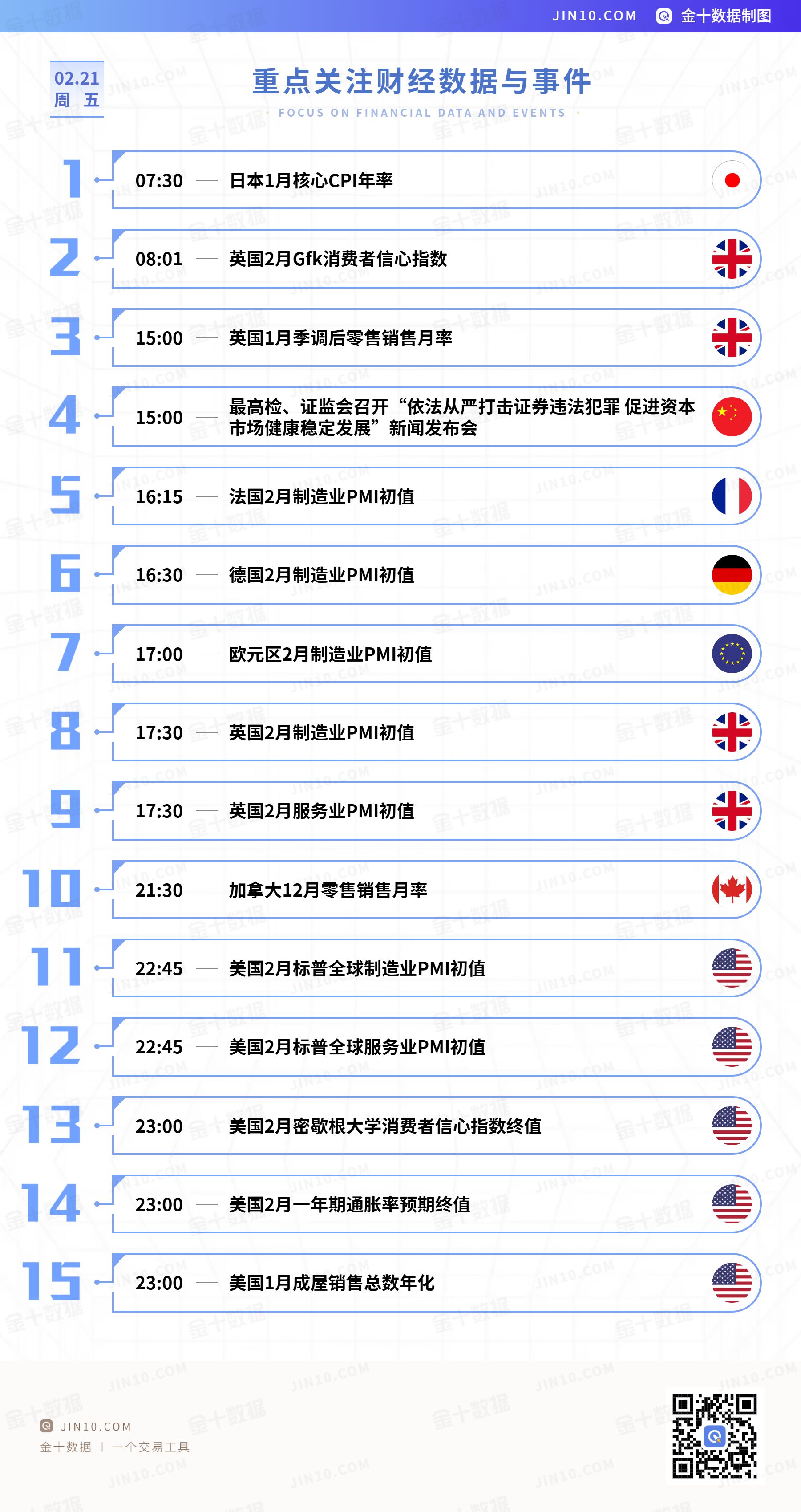 15:00,最高检、证监会2月21日召开“依法从严打击证券违法犯罪促进资本市场健康发展”新闻发布会;