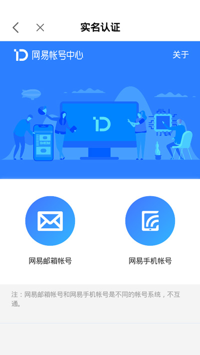 5.选择一个账号进行实名认证,注意网易邮箱账号和网易手机账号是两个独立账号,并不会互通,两个账号实名认证流程相同;