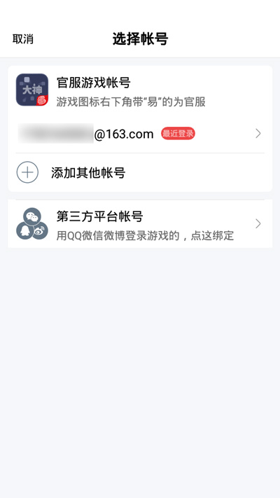 5.如果我们是使用当前登录,点击账号进入检测游戏账号进行绑定,也可以【添加其他账号】,使用QQ微信微博、或者其他的游戏账号登录游戏的,点击【第三方平台账号登录】;